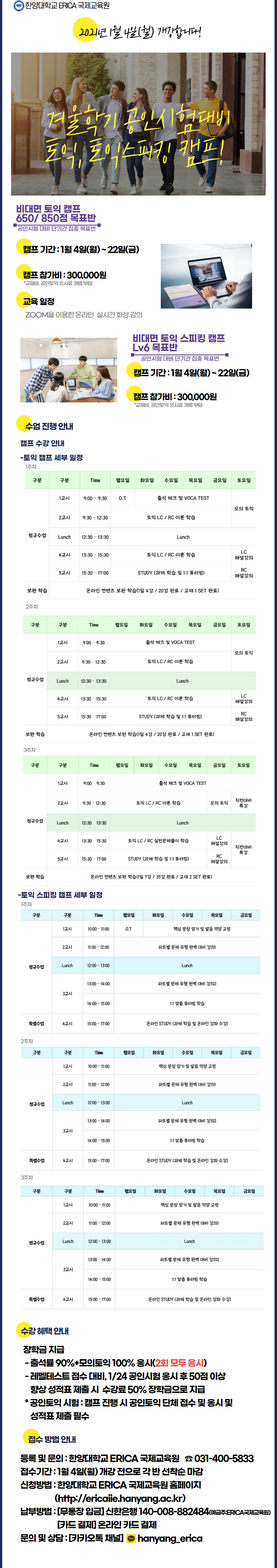 한양대 에리카 겨울학기 비대면 토익 캠프
